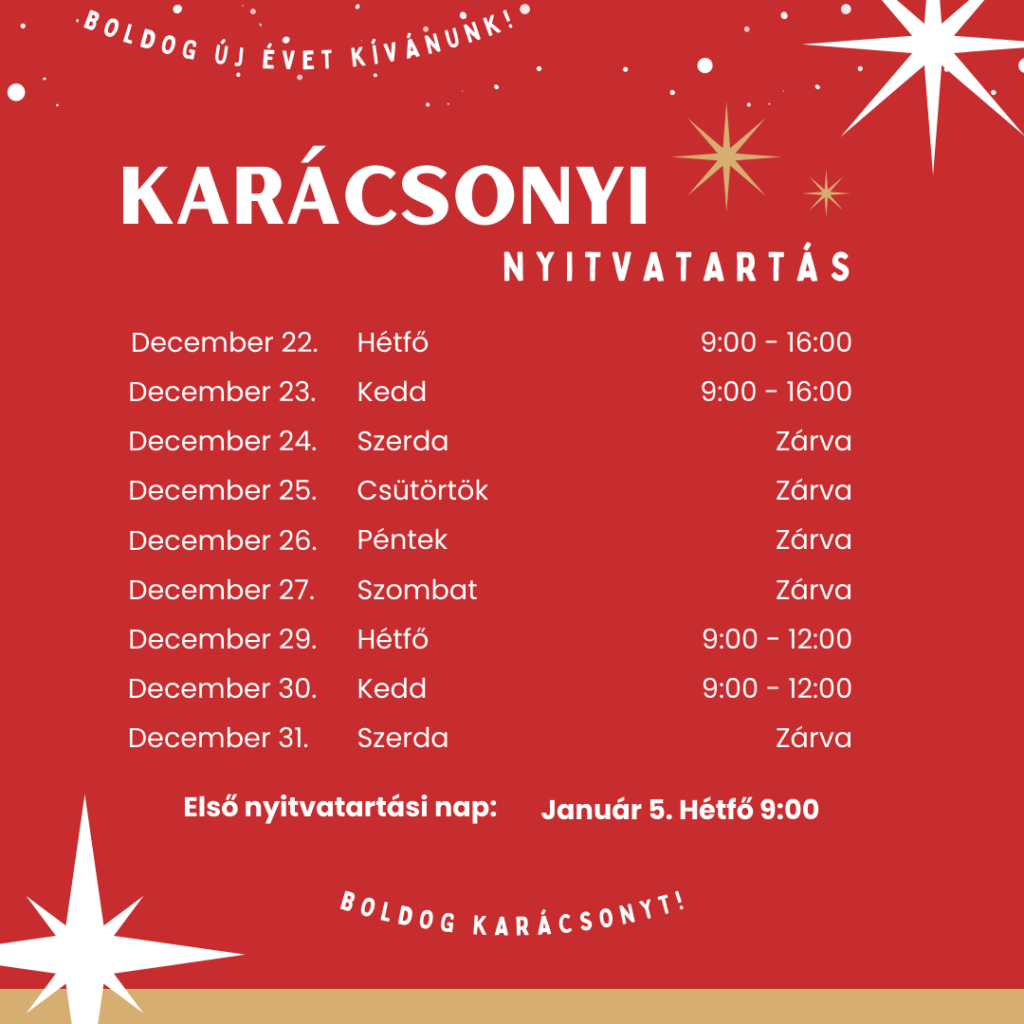 Az ünnepi, illetve rendkívüli nyitvatartásról minden esetben időben tájékoztatást adunk, és az aktuális információkat mindig naprakészen feltüntetjük. Indulás előtt javasoljuk az aktuális nyitvatartás ellenőrzését.